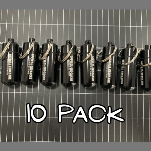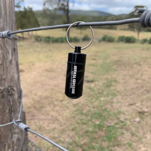 What you’re really looking for is one of these! A classic in geocaching, this style of container has become the go-to choice for discreet hides. Each tube comes with a rubber O-ring to keep out the elements, a large key ring for easy attachment, and features the “Official Geocache” text along with the subtext “Please do not remove.”